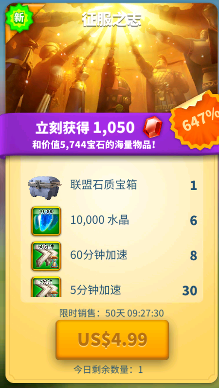 您还可以通过购买礼包和城市供应卡获得水晶,这些卡每天都会更新。供应卡只能购买一次,持续50天,涵盖KVK的整个激活时间