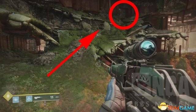 2.这个区域的箱子位于一个破旧的房子里,墙上有一个倒塌的墙。有碎石让你往上走。进去,从天花板上的洞里跳起来,找到宝箱。