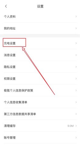 2、点击充电设置按钮,进入极氪应用设置页面,点击充电设置按钮。