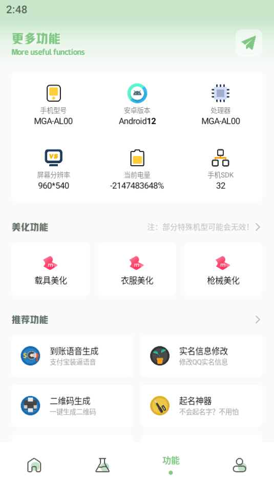 3、在功能里面,你可以看到自己设备的具体配置信息。
