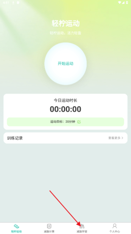 1、点击打开手机上的轻柠妙减app进入主页,点击下方导航栏中的减脂学堂。