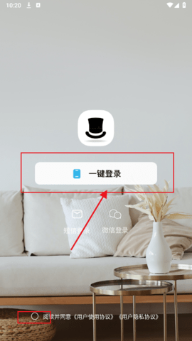 1、打开手机上的收纳先生app进入主页,点击同意用户协议,第一种是一键登录。