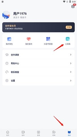 3、成功登录后,来到主页,点击底端的“我的”选项,再点击“工具箱”选项。
