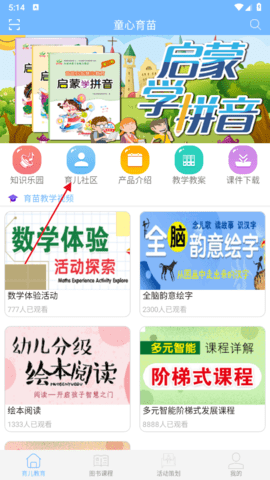1、首先在您的手机上启动童心育苗app进入主界面。