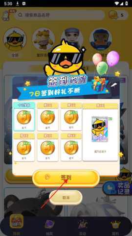 2、来到主页进行签到,可以获取金币,登录满七天还可以获得免费皮肤。
