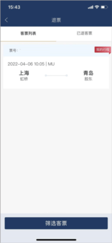 2、接下来,在跳转出的退票窗口界面中,您需要从“客票列表”中明确需取消预订的航程。
