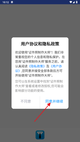 1、打开手机上的证件照制作大师app,点击同意用户协议进入。