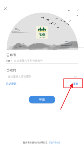 3、来到登录页点击页面右下角的蓝色字体注册进入。
