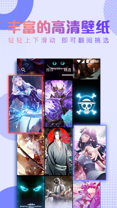 1、丰富的高清壁纸,轻轻上下滑动即可浏览和选择。