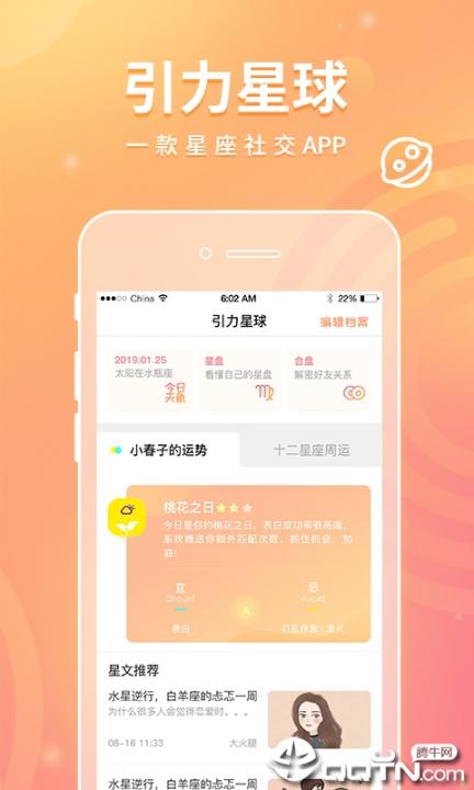 引力星球是一款非常好用的手机星座社交应用。在这里,你可以全方位了解星座知识,找到志同道合的好友。星座互配,找到和你最契合的ta。感兴趣的朋友们快来下载体验吧。