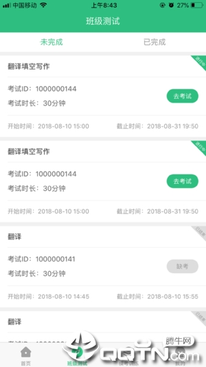 还可以快速筛选移动端支持的班级测试,直接进入考试。