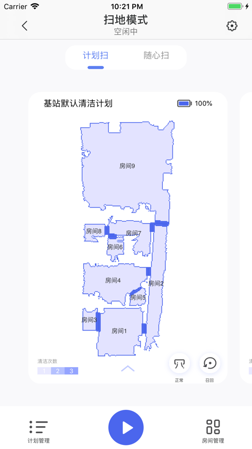 可选择清扫房间,清扫次数,拖地湿度等选项,针对不同使用场景,制定你的专属清洁方案