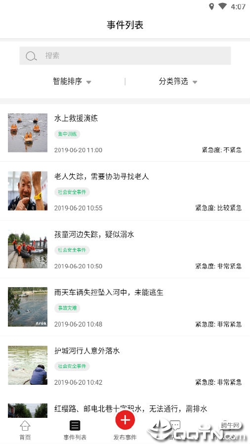 志愿者可发布自己所遇到的应急事件,审核通过后显示在地图上,展示给所有志愿者。可以查看紧急事件的动态。