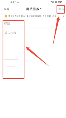 4、网站服务界面,输入反馈标题、反馈内容、上传图片,点击【发布】。