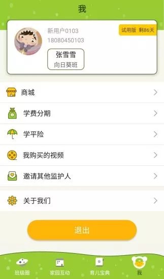 班级圈、宝贝在线、宝贝考勤,园长信箱,班主任信箱。