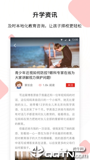 及时的本地化教育资讯,带家长快速了解本地重点学校、升学政策,绝不错过幼升小、小升初等升学关键期,择校更轻松。