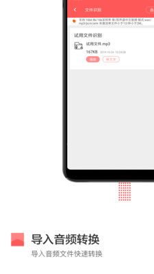 - 文件识别,从应用外部导出以录制完成的音频文件,将其转换文字内容!