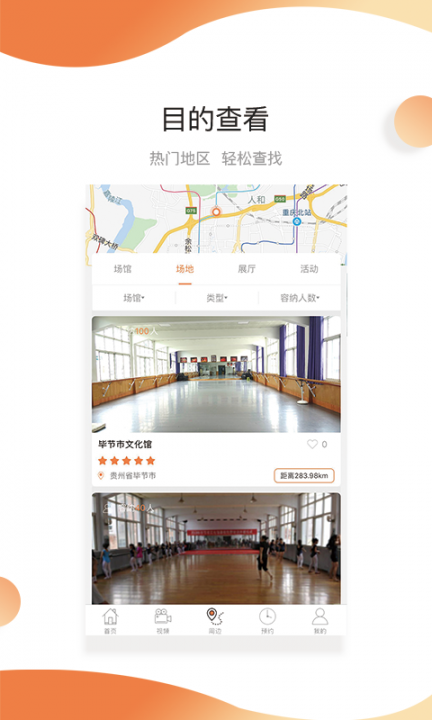 根据用户的位置,为用户推荐周边的场馆、场地、活动、培训、展厅等等,通过文化与科技的融合,为用户提供更便捷的文化品质生活服务。