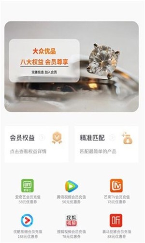 优品商城为会员提供吃穿住行、影视阅读娱乐等全方面会员权益抵用券