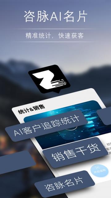 咨脉AI名片是重庆信咨诚互联网科技有限公司开发的一款营销服务软件,可以帮助用户精准统计文章访问数据,快速挖掘精准客户,每天为用户分享海量的销售行业技巧,帮助用户提升销售额,需要的朋友欢迎下载使用吧。