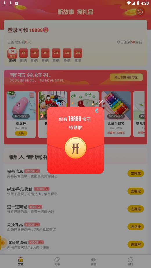 新用户注册即送18888宝石,新用户**天即可用宝石兑换精美礼品,听故事兑礼品,故事多多,礼品多多。