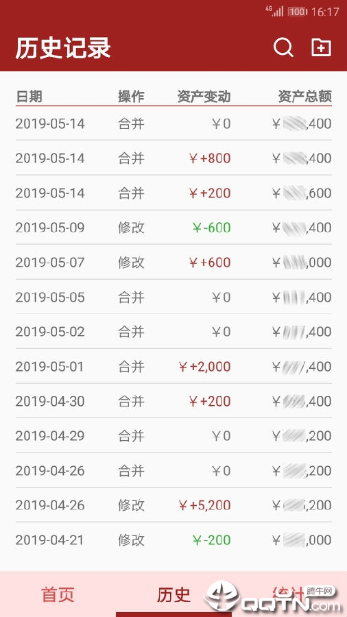 2. 支持在历史记录中按资产变动的范围进行检索。