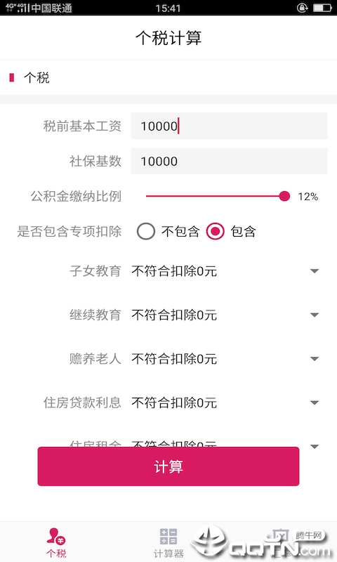 适用于2019年最新个税计算,包含子女教育、继续教育、赡养老人、住房贷款利息、住房租金等专项扣除。
