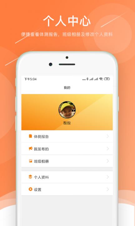 个人中心:便捷查看体测报告,班级相册及修改个人资料;