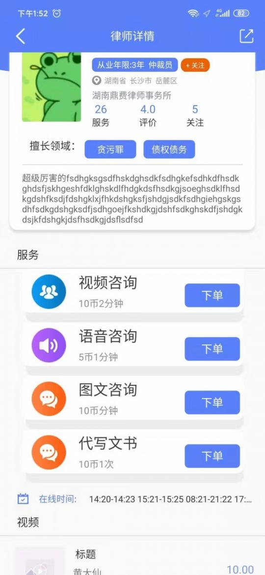 用户找到合适的律师并下单后,可以通过图文、音频通话、视频通话等多种方式向律师咨询法律问题;