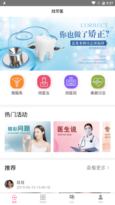 找牙医app,全年龄段口腔一站式服务平台。淘服务、找医生、找医院、美丽日志,提供超过10000名公立,私立医院口腔科执业医生,在线问诊,让您不出家门即可享受专业服务。