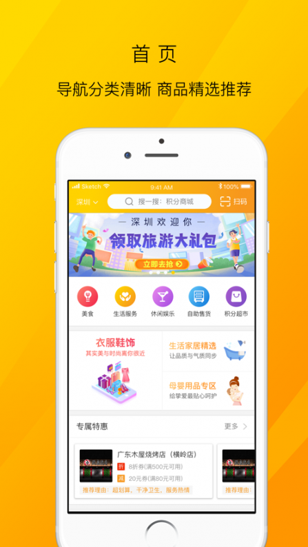 【发现功能】周边商家一揽无余,享受商家优惠。