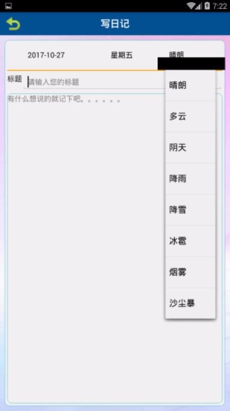 能够直接记录每天的天气状态,系统有为大家带来全面的天气选择,直接选择记录即可;