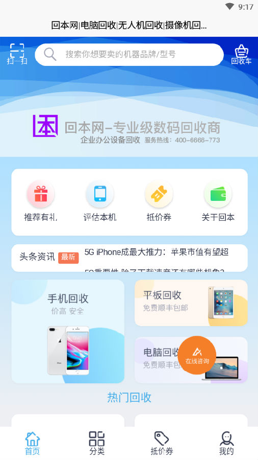 回收产品涵盖笔记本电脑,手机,平板电脑