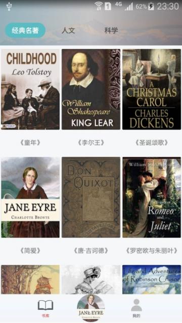 1、经典英文名著的有声阅读,部分有提供中文对照翻译;