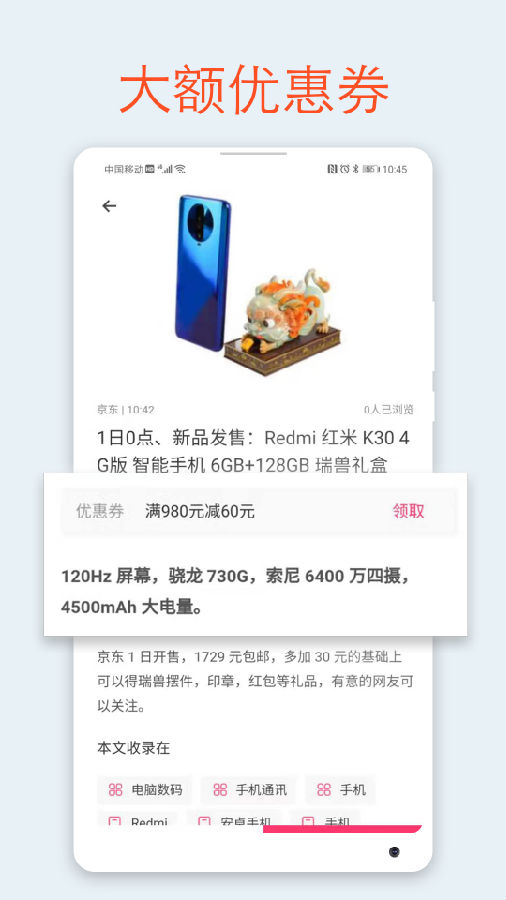 「发现」实时更新用户挖掘的优惠券、低价折扣等,掌握一手情报。
