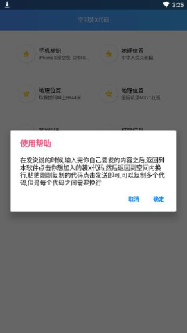 qq空间装X代码手机版app是一款主要给用户提供QQ空间的小工具的手机软件,在本软件中,你可以随时随地的快速的发布说说,也可以进行地理位置模拟,还可以让你伪装说说的手机标识,而且本软件是完全的免费的,让你可以获得轻松的体验,所以有需要的朋友可以下载体验。