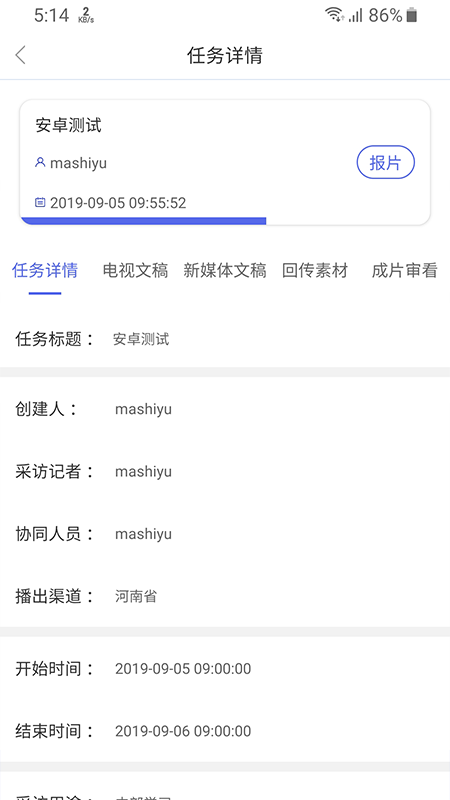 “融媒指挥”APP客户端是河南广播电视台落实中央关于推动传统媒体与新兴媒体融合发展的指导意见,秉承移动优先理念,由河南大象媒体技术公司开发。融媒指挥主要用于给记者下派任务,记者在线编辑文稿,报片,审核,监控,同时可以直接用手机推流直播,实现一次采集,多元传播。