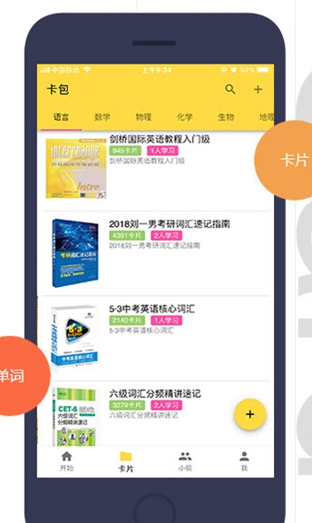 卡片记忆app以独特的记忆方法,自己可以创建学习小组,邀请志同道合的同伴一起学习,智能制定复习计划,比你更懂你!软件里面包含了:语数英,医法商等知识卡包,应有尽有操作也非常方便!