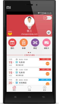 即时查看健身俱乐部近期的课程安排、私人教练的工作档期,在线预约课程,获悉课前提醒