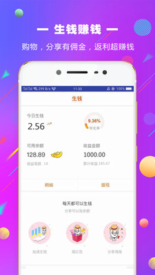 生钱:根据收益金额,天天生钱,无门槛提现;