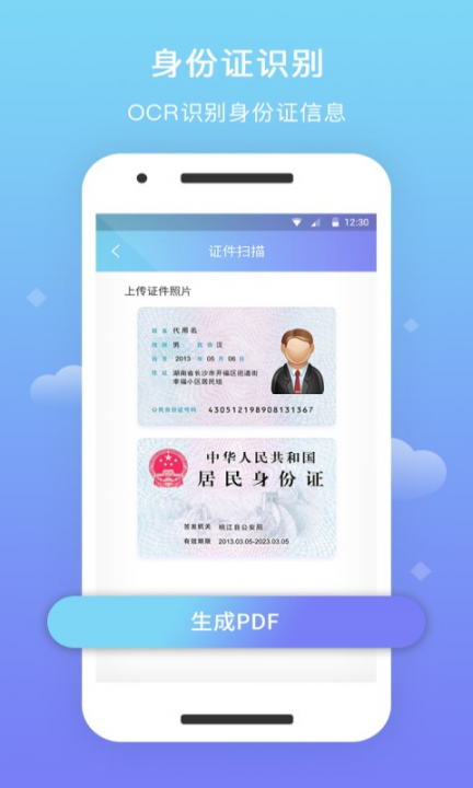 证件照识别:对身份证进行扫描,快速导出pdf文档并保存。