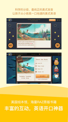 美国绘本馆:内含美国原版RAZ上千本绘本课程。在美国和加拿大有超过1万多所公立学校将RAZ作为阅读教材,在过去二十多年间,RAZ覆盖了全球180多个国家的数百万学生。