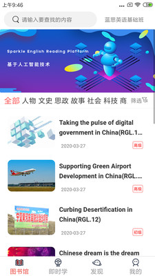 平台资源都是原汁原味的英文原版文章,均是实时热点国际新闻、报刊等内容;是由美国罗文大学陈秀芳教授对应母语国家年级分级(主要分为初级、中级、高级这三个阶段)作为学习目标而精心制定的阶梯式分级学习资源,