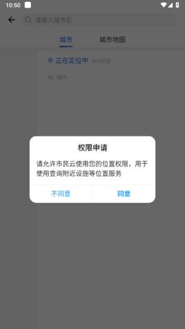 2、首次进入需要点击同意使用位置授权的软件权限。