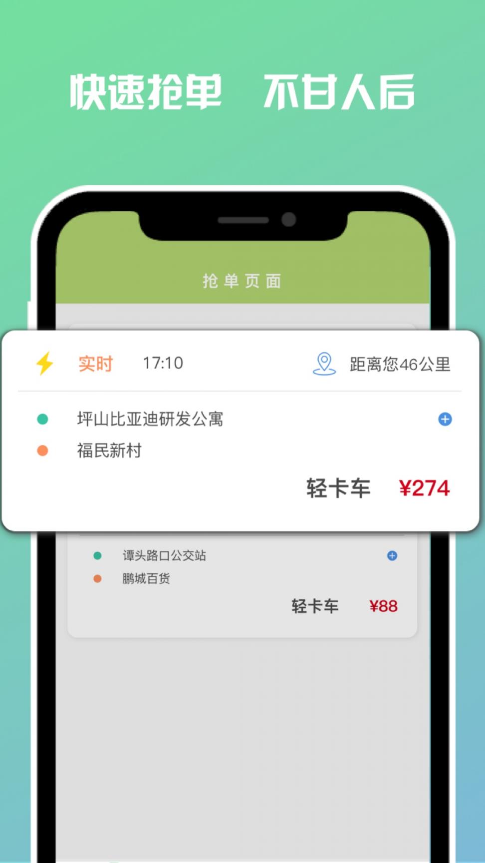 实时为您更新货源信息,好货自已找上门!平台自动派单、就近接单、减少空返、自动结算!