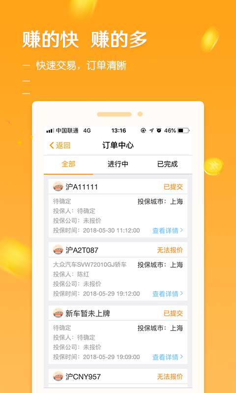 1、快人一步开门红:快速查看车险报价,在线投保,为车主及代理人提供快捷的投保通道;