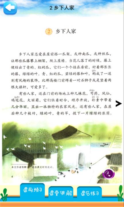 通过朗读的方式学习每一篇课文,并配有每一课的解析,以及每一课的生字词练习。