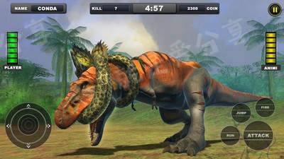 1.逼真的蟒蛇形象和霸王龙形象,让你在游戏中领略两大巨兽的精彩战斗;