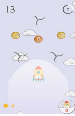 1、在这款休闲的飞行游戏中,玩家将会扮演一只笨拙的小鸟,目标是飞上更加广阔的天空,通过不断点击来向上飞。