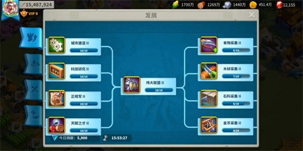 携手并进:提升联盟帮助最低加速时长至3分钟。此技能极大加快建筑、科技升级速度,还可用于分批治疗伤兵,实现“秒回血”效果。